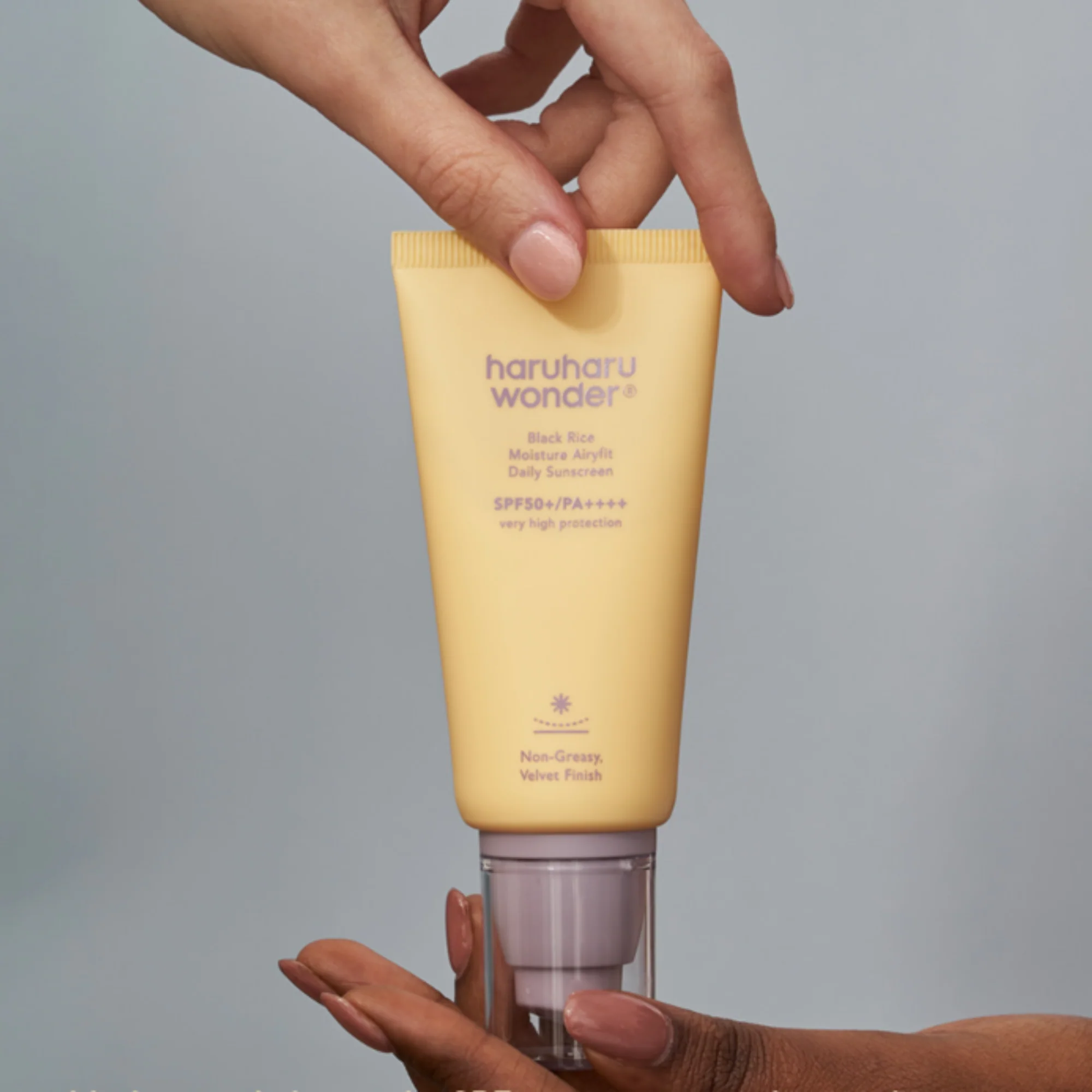 The Black Rice Moisture Airyfit Daily Sunscreen Unscented by Haruharu Wonder is a lightweight, fragrance-free sunscreen perfect for everyday use. It provides high protection with SPF50+ PA++++, effectively shielding your skin from both UVA and UVB damage. Its non-greasy formula absorbs quickly, leaving no white cast, and it includes hydrating ingredients like black rice extract and hyaluronic acid to keep your skin moisturized all day.