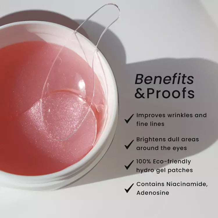 Our Bulgarian Rose Water Hydrogel Eye Patch provides hydration, brightening effects, and anti-wrinkle solutions!