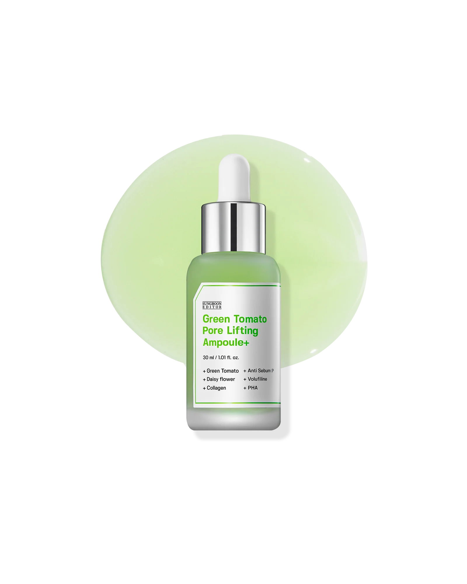 Tighten and refine with the SUNGBOON EDITOR Green Tomato Pore Lifting Ampoule+ — a powerful serum designed to target enlarged pores, sagging skin, and excess oil. Infused with antioxidant-rich green tomato extract and a complex of skin-firming peptides, this fast-absorbing ampoule visibly lifts and smooths the skin while helping to rebalance sebum production. Ideal for oily, textured, or mature skin types needing a pore-focused boost.