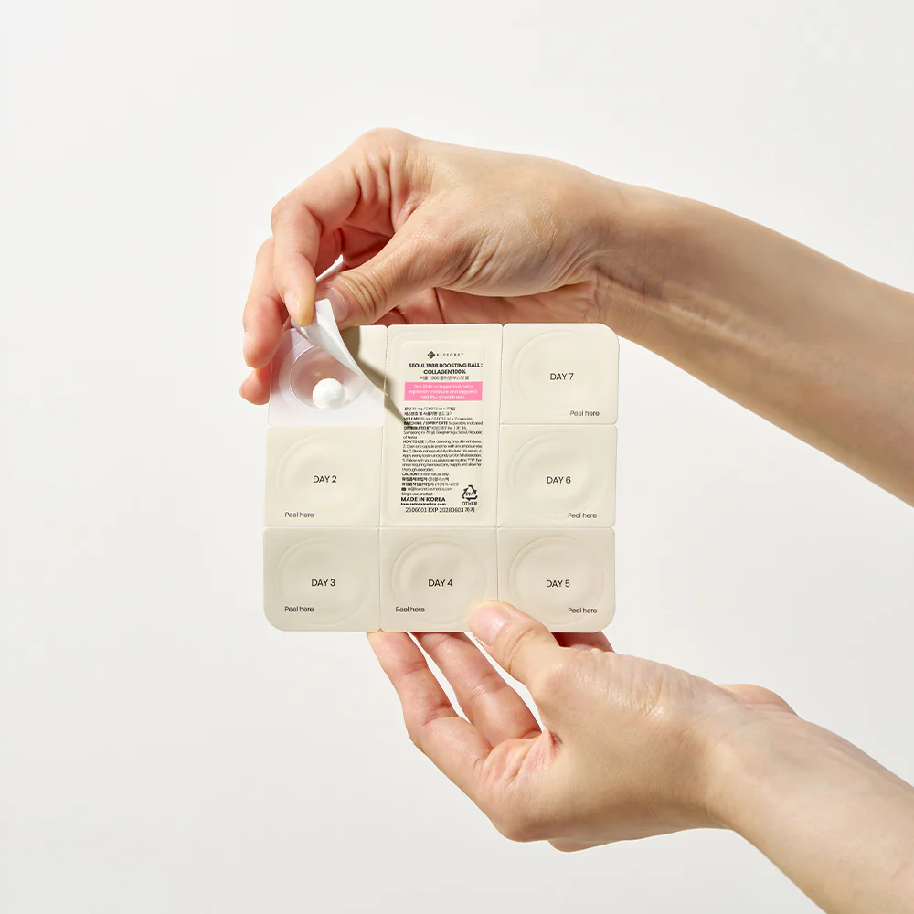 Revitalize your skin with the power of pure collagen. The KSECRET Seoul 1988 Boosting Ball is made of 100% hydrolyzed collagen, designed to strengthen skin elasticity, deeply hydrate, and visibly reduce the appearance of fine lines and wrinkles.